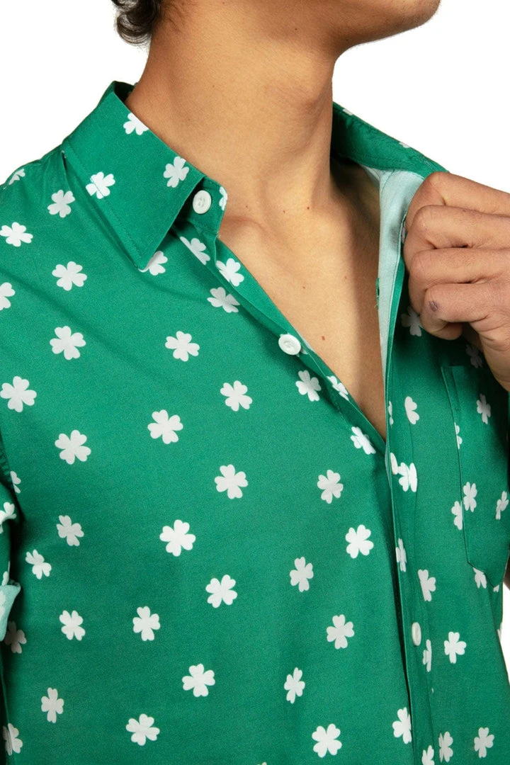 Tipsy Elves Men’s Green Crushin’ Clovers Button Down Shirt