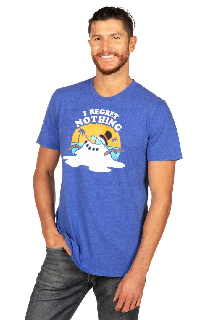 Beers before 10am? A heaping plate of seconds? We see no wrong, and neither should you. Embrace this snowman’s spirit with our Men’s I Regret Nothing tee. This super soft cotton is the Christmas hug you never needed, featuring one super melty snowman on a hot day. We feel him. We’ll be melting by the fire with our (number…unknown) drink if anybody needs us.
