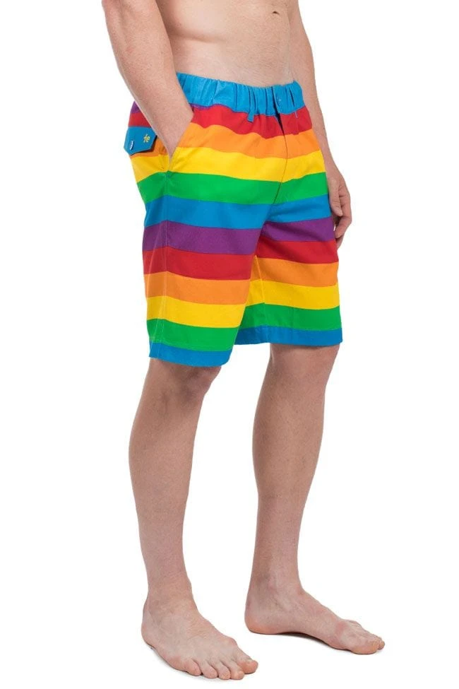 Take your wardrobe game to the next level with these fabulous rainbow shorts.