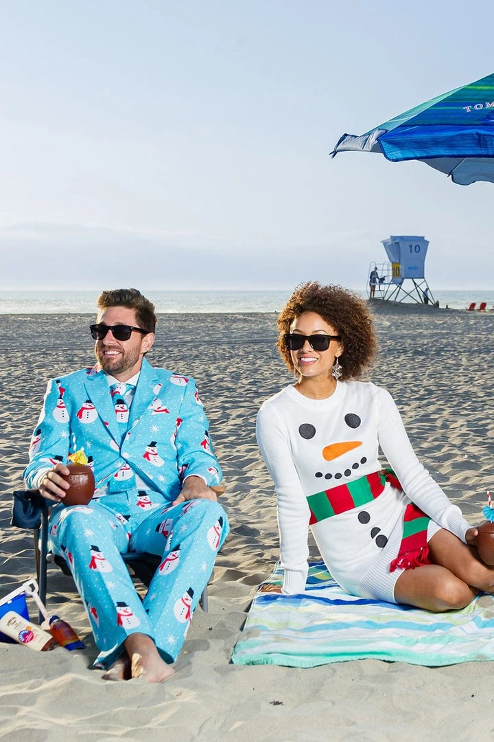 Watch all the ladies melt when you stroll into the room wearing these frostily cheerful holiday trousers. If you’re really bold, you can wear a red scarf and a top hat with this ensemble. But skip the carrot nose. It’s too dangerous with all the reindeer roaming the streets on Christmas Eve-