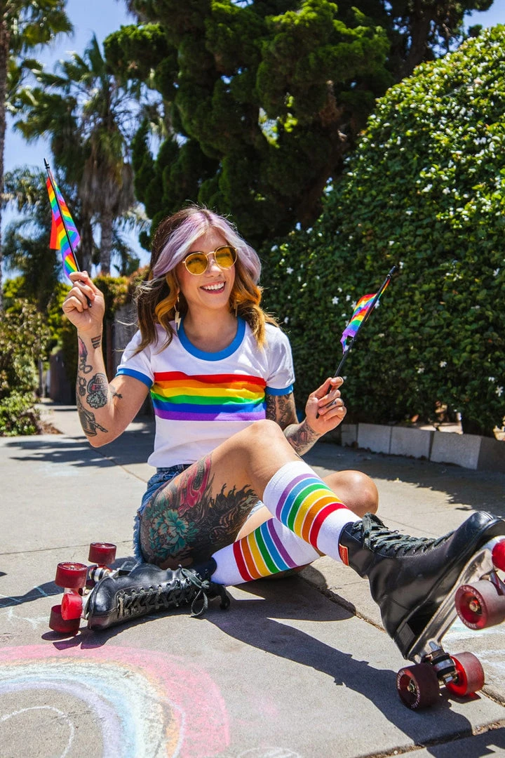White socks and athletic shoes. What could be more awesome to wear when you are traipsing all over town during a St. Patrick’s Day parade? How about adding a little bit of rainbow to the mix? We think that’s the perfect way to amp up the magic in your outfit.