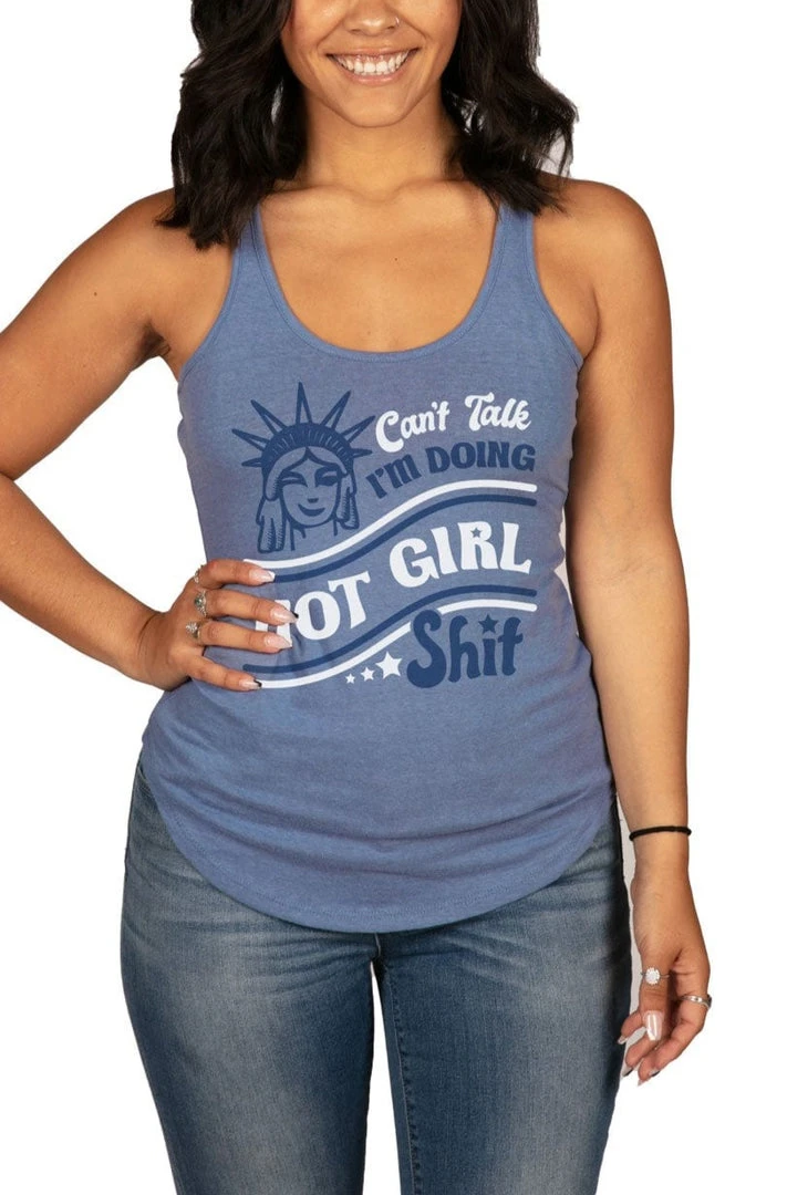 It’s a hot, breezy Saturday afternoon, and you already know where you can find us – doing hot girl sh*t. What does that mean? Whatever you want it to mean, obviously. As if you were ever in question, the Women’s Doing Hot Girl Sh*t Tank Top is here to let everyone know you got ish to take care of, and you mean business. It’s what the iconic statue of liberty stands tall for every day, and we’re doing her proud by taking charge.